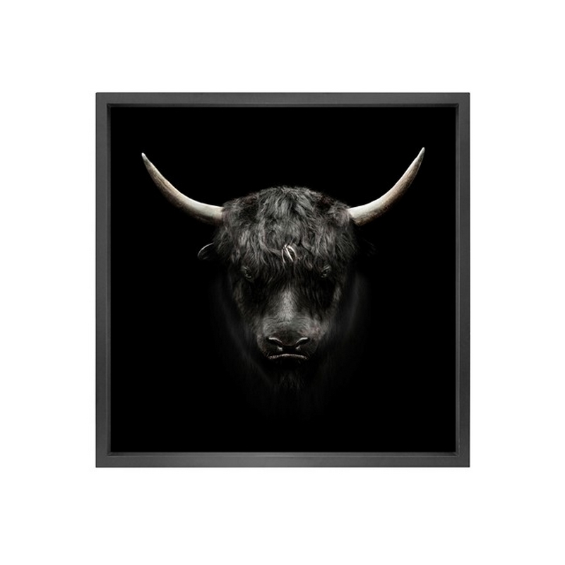 Canvas picture 5cm black frame black ox 120cm x 120cm